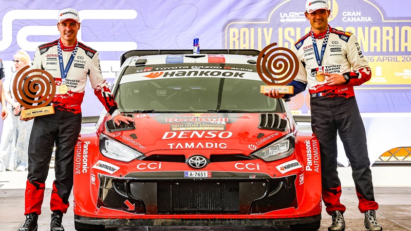 Duelo de Toyota: Sébastien Ogier mantiene el liderato en el 1-2-3-4-5 de Toyota Gazoo Racing, pero Oliver Solberg le está plantando cara para darle mucha emoción al día final del rally.